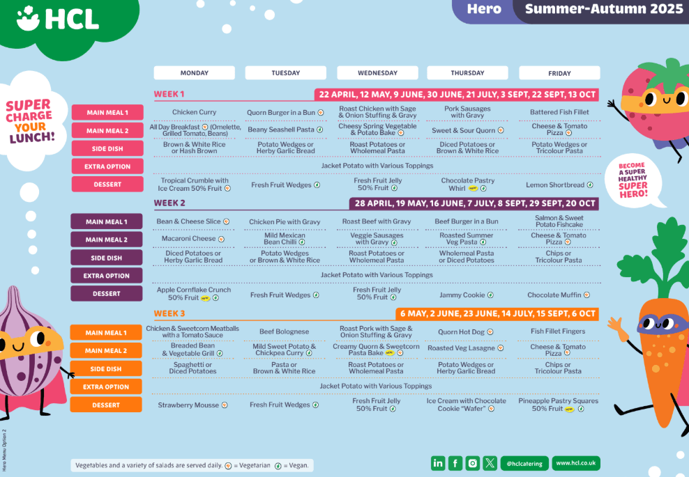 The cost of a school meal provided by HCL is £4.20 for all KS2 (Year 3-6) children, unless receiving Free School Meals (FSM). KS1 (Reception to Year 2) children remain free as part of the Universal Infant Free School Meal scheme. Anyone who thinks they may be entitled to Free School Meals should apply online to Herts County Council by clicking here or alternatively telephone 0300 123 4048 for further information.